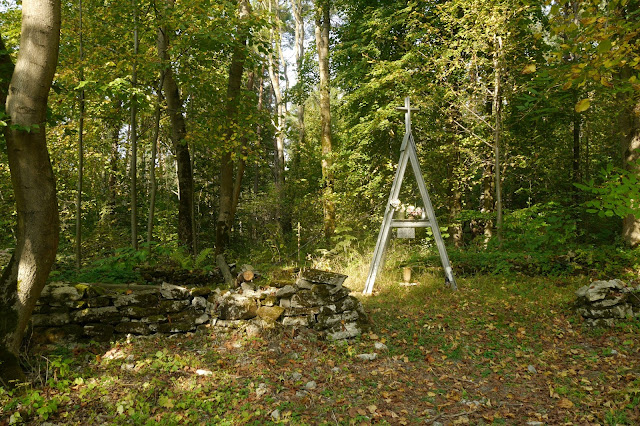 Jak na całym Roztoczu , ciągle napotykaliśmy przydrożne krzyże i kapliczki. Sporo z nich niestety już w stanie ruiny.